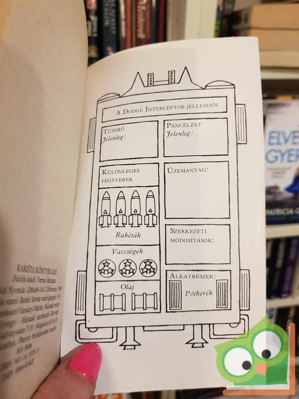 Miután egy gyilkos vírus kiirtja az emberiség nagy részét, a világ barbárságba süllyed. A túl élők, mint te is, megerősített városkákban él nek, vagy banditaként a falakon kívül kóborol nak, szabadon garázdálkodnak. Küldetésed arra szólít, hogy átkelj a vad sen ki földjén a távoli San Angeló-i olajfinomítóba, és létfontosságú üzemanyagot hozz Új Reménynek, békés kisvárosodnak. Az út még a fel fegyverzett Dodge Interceptorral is csupa ve szély, s nem tudni, sikerül-e élve megúsznod a nagy vállalkozást. Könyvünk a nem túl távoli jövőbe helyezi hátborzongató kalandjait. Ebben a kötetben dupla Kalandlapot, kibővített harci rendszert s rengeteg izgalmat találsz.