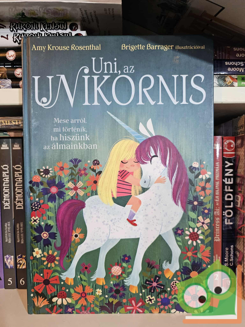Uni, az unikornis szinte minden tekintetben olyan, mint társai. Egy dologban azonban eltér tőlük: Uni hisz abban, hogy kislányok márpedig léteznek! Rosenthal könyve egy megfordított unikornis-történet. Egy mese arról, hogy teljesülhetnek álmaink, és igenis van helye, szerepe, értelme életünkben a gyerekkori képzeletvilágnak. Visszafogott, gyönyörű színekkel illusztrált mű, amely minden tekintetben eltér a többi unikornisos könyvtől. Barrager képeinek köszönhetően még azok is hinni szeretnének az egyszarvúakban, akik eddig egy picit kételkedtek.