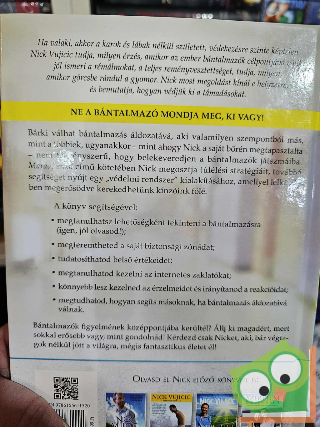 Ha valaki, akkor a karok és lábak nélkül született, védekezésre szinte képtelen Nick Vujicic tudja, milyen érzés, amikor az ember bántalmazók célpontjává válik: jól ismeri a rémálmokat, a teljes reményvesztettséget, tudja, milyen, amikor görcsbe rándul a gyomor. Nick most megoldást kínál e helyzetre, és bemutatja, hogyan védjük ki a támadásokat.