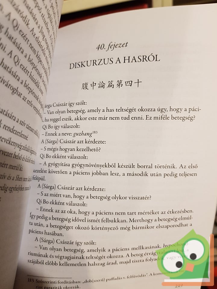 A legendás Huang Dinek, vagyis a Sárga Császárnak tulajdonított mű mindmáig a hagyományos kínai orvoslás legjelentősebb forrásainak egyike, hanem nem épp a legfontosabb azok közül. A több mint kétezer éve íródott és összeállított könyv jelentőségét a nyugati orvostudomány alapjainak számító Corpus Hippocraticumhoz, a Hippokratészi gyűjteményhez szokás hasonlítani. A Sárga Császár könyvének jelentőségét az a forradalmi szemléletbeli és világnézeti paradigmaváltás adja, hogy a kínai kultúrkörben korábban létezett és széles körben elterjedt animisztikus és samanisztikus betegségmagyarázatokra adtak új, alternatív magyarázatot. A betegségeket többé nem démonok, gonosz és ártó szellemek okozzák, hanem az ember univerzumban elfoglalt helye, és az abból adódó makro- és mikrokozmikus párhuzamokban megfogalmazható egyensúly megbomlása idézi elő. Az Egyszerű kérdések címet viselő, 81 fejezetből álló mű szerint olyan racionális tényezők állnak a betegségek hátterében, mint az életmód, az étrend, az időjárás, a pszichés és mentális adottságok vagy az életkor. A hagyományos kínai világnézetre oly jellemző erőket és rendező elveket (Tao, Yin-Yang, Qi , az öt elem) ugyancsak ebben a műben állították először olyan rendszerbe, amely az emberi lények biológiai létezéséért és egészségi állapotáért felelős. A könyv olyan, korábbról nem ismert módszereket kínál, melyek révén ezen erők egyensúlyi állapota ismét létrehozható és a betegségek megelőzhetők, illetve gyógyíthatók.