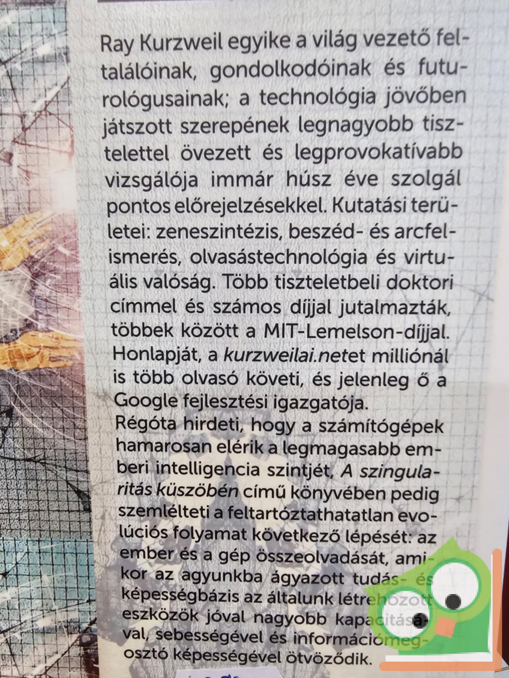 A szingularitás korában intelligenciánk egyre inkább nem biológiai alapokra kerül át, és billiószor hatékonyabb lesz, mint manapság. Új civilizáció hajnalán járunk, amely lehetővé teszi, hogy meghaladjuk biológiai korlátainkat és megsokszorozzuk kreativitásunkat. Ray Kurzweil, a Google fejlesztési igazgatója évtizedek óta a technológia jövőben játszott szerepének legnagyobb tisztelettel övezett és legprovokatívabb vizsgálója. Régóta hirdeti, hogy a számítógépek hamarosan elérik a legmagasabb emberi intelligencia szintjét, A szingularitás küszöbén című könyvében pedig szemlélteti a feltartóztathatatlan evolúciós folyamat következő lépését: az ember és a gép összeolvadását, ahol az agyunkba ágyazott tudás- és képességbázis az általunk létrehozott eszközök jóval nagyobb kapacitásával, sebességével és információmegosztó képességével ötvöződik.