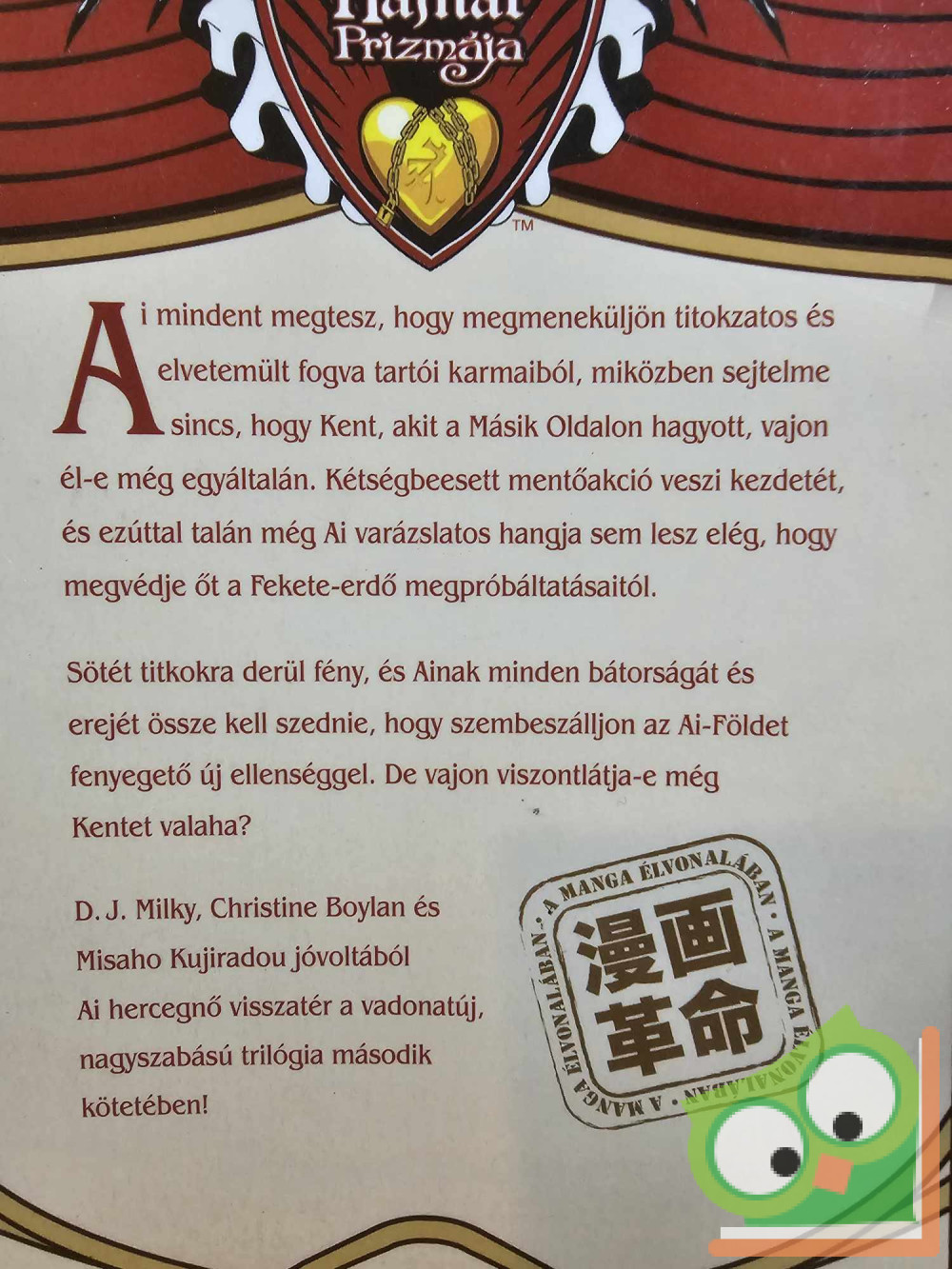 Ai mindent megtesz, hogy megmeneküljön titokzatos és elvetemült fogva tartói karmaiból, miközben sejtelme sincs, hogy Kent, akit a Másik Oldalon hagyott, vajon él-e még egyáltalán. Kétségbeesett mentőakció veszi kezdetét, és ezúttal talán még Ai varázslatos hangja sem lesz elég, hogy megvédje őt a Fekete Erdő megpróbáltatásaitól. Sötét titkokra derül fény, és Ainak minden bátorságát és erejét össze kell szednie, hogy szembeszálljon az Ai-Földet fenyegető új ellenséggel. De vajon viszontlátja-e még Kentet valaha? D.J. Milky, Christine Boylan és Misaho Kujiradou jóvoltából Ai hercegnő visszatér a vadonatúj, nagyszabású trilógia második kötetében!