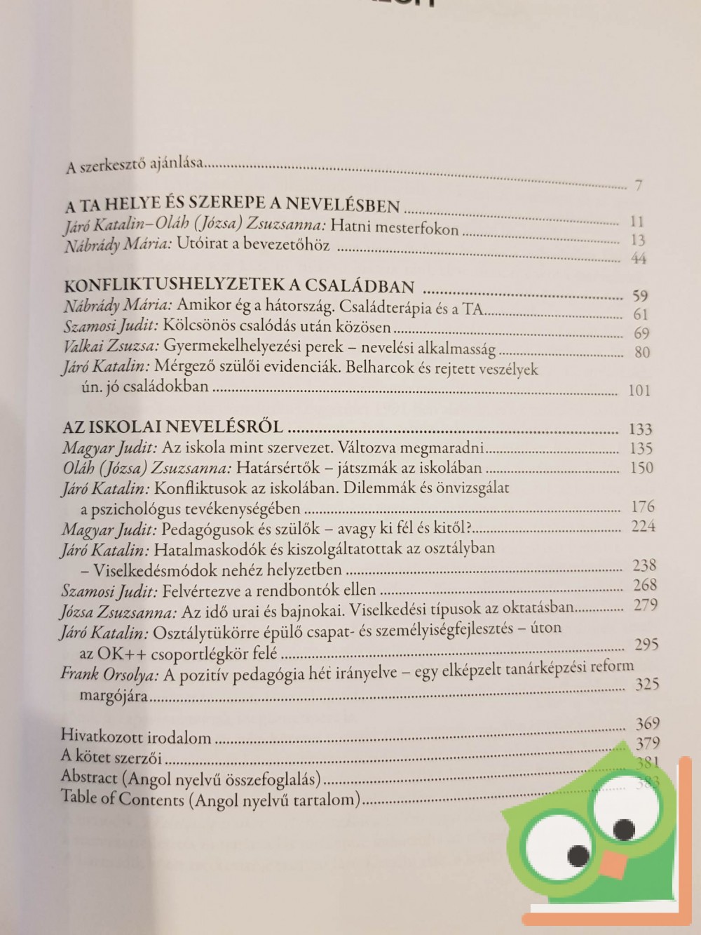 Általában szeretnénk megérteni, miért nem tudunk bizonyos helyzeteket legjobb szándékunk ellenére sem kezelni, miként hatnak ránk akaratunk ellenére a szervezetek, a szociális közeg, vagy miért nem tudunk szót érteni gyermekeinkkel, pedig azt nagyon jól tudjuk, hogy szüleinknek hogyan kellett volna velünk szót érteniük.Ebben a kötetben a nevelés és az oktatás problémáit s azok lehetséges TA-s megoldásait vázoljuk fel, érdekes és érthető példákkal illusztrálva.