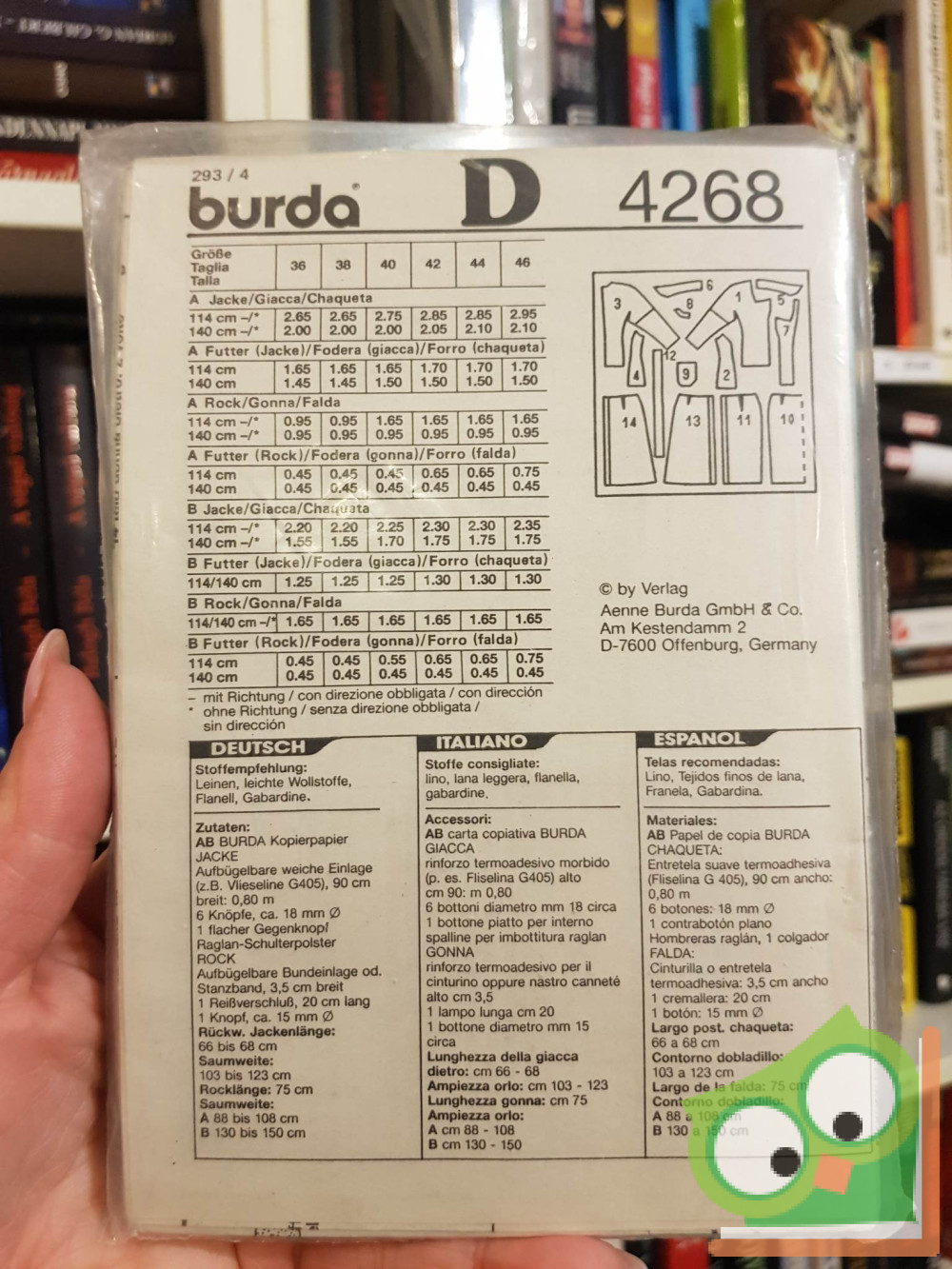 Burda modell szabásmintával fóliában. Német, olasz és spanyol nyelven.