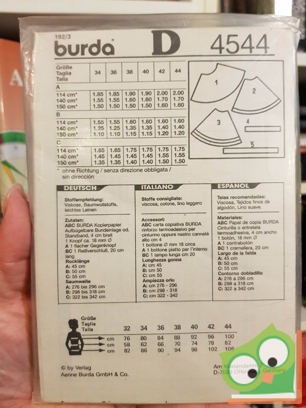 Burda modell szabásmintával fóliában. Német, olasz és spanyol nyelven.