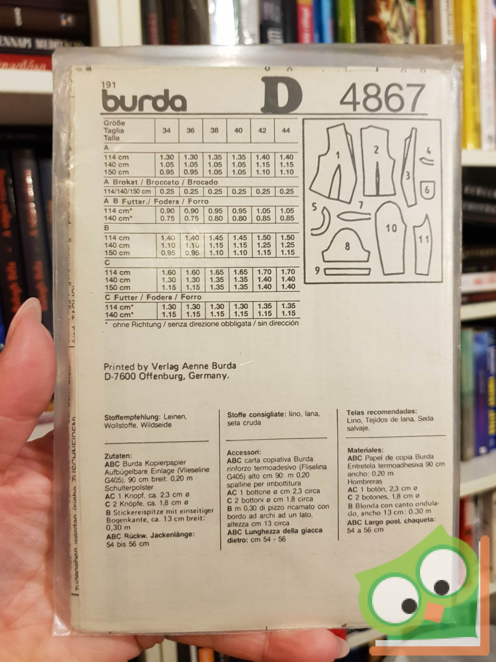 Burda modell szabásmintával fóliában. Német, olasz és spanyol nyelven.
