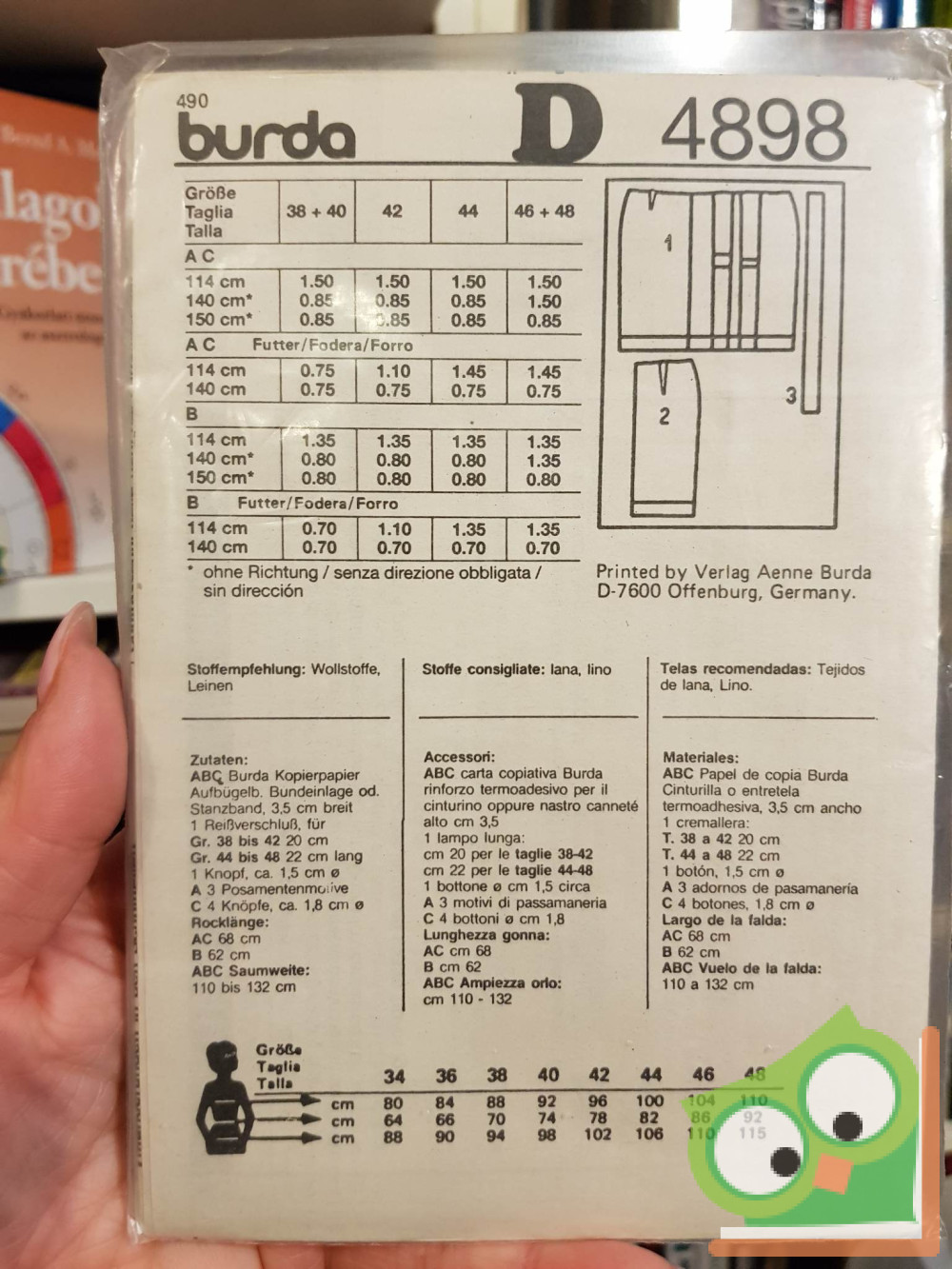 Burda modell szabásmintával fóliában. Német, olasz és spanyol nyelven.