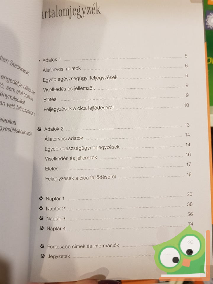 Van valami közös azokban, akik ezt a naplót a kezükben tartják: a cicájuk iránti szeretet, és vélhetően a törekvés, hogy jó gazdái legyenek hűséges társaiknak. Éppen ezért ezt a könyvet úgy alkottuk meg, hogy a gazdik és a kedvencek közös élményeinek, emlékeinek megörökítéséhez teret adjon írásban és fényképeken egyaránt. Mindeközben segíti a gondos gazdikat az állatokkal kapcsolatos legfontosabb dátumok, teendők, információk egy helyen tartásában. A könyv tehát mindennapi útmutató és családi album egyszerre, amelyhez már csak a szép élmények hiányoznak.