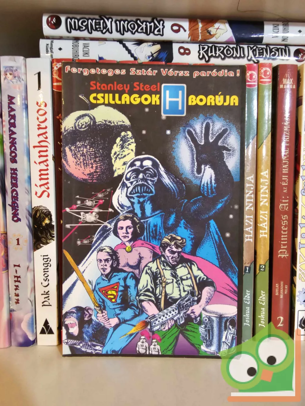 Talán a vakszerencse talán az írói fantázia műve volt, hogy ebben a pillanatban lépett be az egyik birodalmi légiós, talpig páncélban. Fején rózsaszínű, szúnyogfejszerű sisakot hordott, amely teljes mértékben akadályozta a kilátásban. Oldalán poroltó lógott, kezében sugárvető, a hátán permetező puttony, amely alkalmas volt biológiai hadviselésre is. Sisakjának tetején kakasos forgó. Egyenruháján jól látható felirattal, csupa nyomtatott betűvel foszforeszkált: `Waffel Eszesz`. Lábán könnyű betoncsizmát viselt, így nem is csoda, hogy nesztelenül tudta becserkészni áldozatát, a fiatal, védtelen (talán még szűz) hercegnőt.