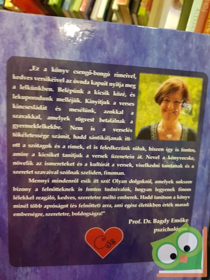 Teljes szívvel és őszintén ajánljuk ezt a könyvet Mindenkinek – óvodásoknak, kisiskolásoknak és kamaszoknak ugyanúgy, mint a szülőknek, nagyszülőknek, nevelőknek, – de főleg azoknak, akik hisznek a versek tanítóerejében, és bátran merik használni ezt az erőt." (a Kiadó)