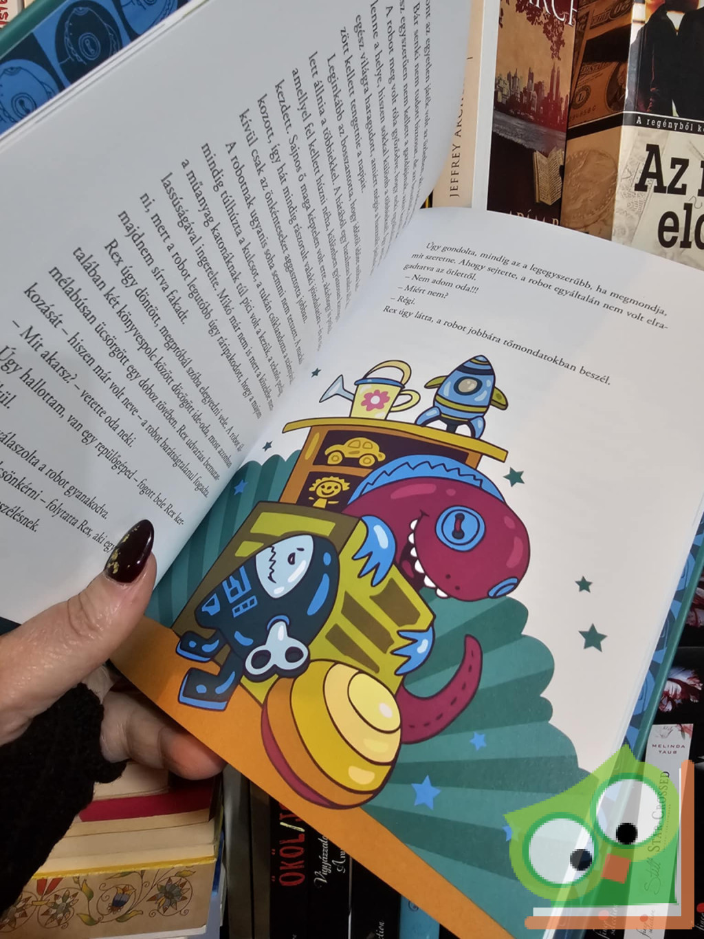 Az utcácskában, ahol történetünk játszódik, az emeletes házak között megbújik egy különleges játékbolt. Nemcsak az különbözteti meg a többi üzlettől, hogy kizárólag használt játékok töltik meg a polcait, hanem az is, hogy a játékszerek életre kelnek, amint kikerül az ajtóra a zárva tábla. Noha egy percet sem unatkoznak és szeretik is egymást, nem múlik el úgy nap, hogy ne gondolnának arra, milyen lehet igazi játékként élni. Nagy szerencséjükre becsöppen közéjük egy bátor és elszánt dinoszaurusz, aki először is nevet kap társaitól, aztán a csapat élére is áll. Izgalmas és mulatságos kalandok során vezeti át őket, mindeközben megvigasztalnak egy zokogó kisegeret, mosolyt varázsolnak a mogorva robot arcára és még a Sötét Doboz Rengeteg titkát is leleplezik. S a végén kiderül, hogy vajon megszereznek-e mindent, ami a szabadulásukhoz nélkülözhetetlen játékrepülő megjavításához szükséges.