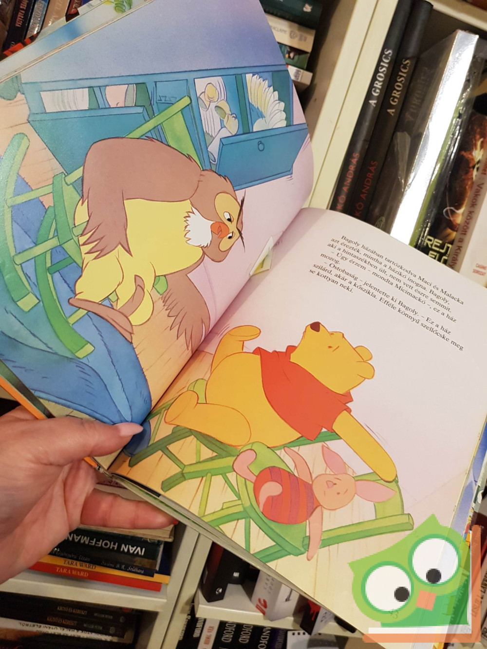 Egy szép őszi napon Micimackó a háza előtti farönkön üldögélt. Valami furdalhatta. Szokásos mosolygása helyett a Csekélyértelmű Medvebocs homlokát ráncolta. Mi a csuda lehet ez? Hopp, megvan! Mellett négy mézescsuport – s mind üres. És Micimackó nagyon éhes volt. – Csak nem ettem meg valamennyit? – mondta fejét vakarva, és besétált házkójába.