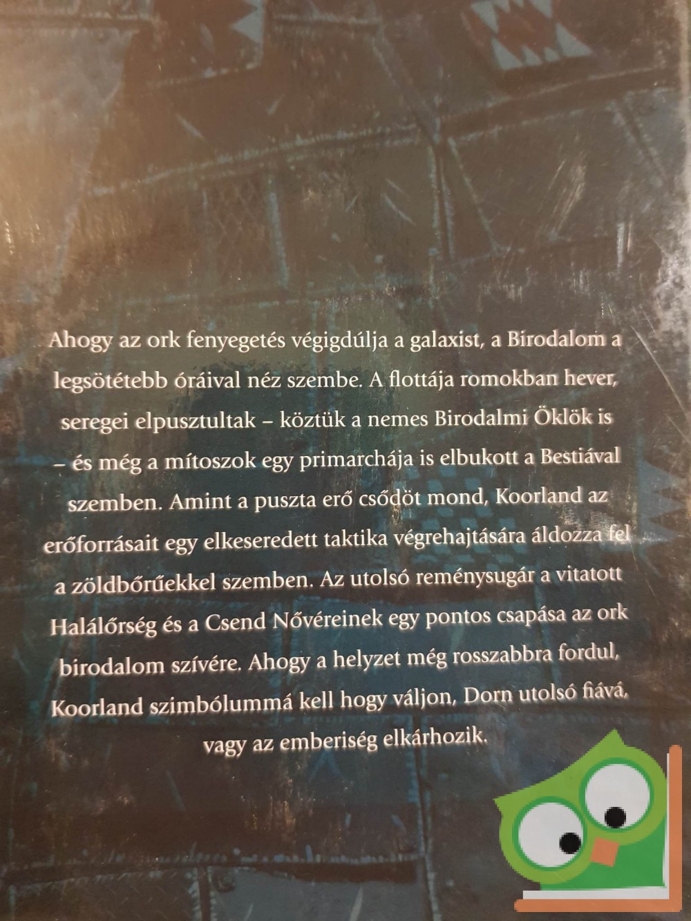 Ahogy az ork fenyegetés végigdúlja a galaxist, a Birodalom a legsötétebb óráival néz szembe. A flottája romokban hever, seregei elpusztultak – köztük a nemes Birodalmi Öklök is – és még a mítoszok egy primarchája is elbukott a Bestiával szemben. Amint a puszta erő csődöt mond, Koorland az erőforrásait egy elkeseredett taktikára áldozza a zöldbőrűekkel szemben. Az utolsó reménysugár a vitatott Halálőrség és a Csend Nővéreinek egy pontos csapása az ork birodalom szívére. Ahogy a helyzet még rosszabbra fordul, Koorland szimbólummá kell, hogy váljon, Dorn utolsó fiává, vagy az emberiség elkárhozik.