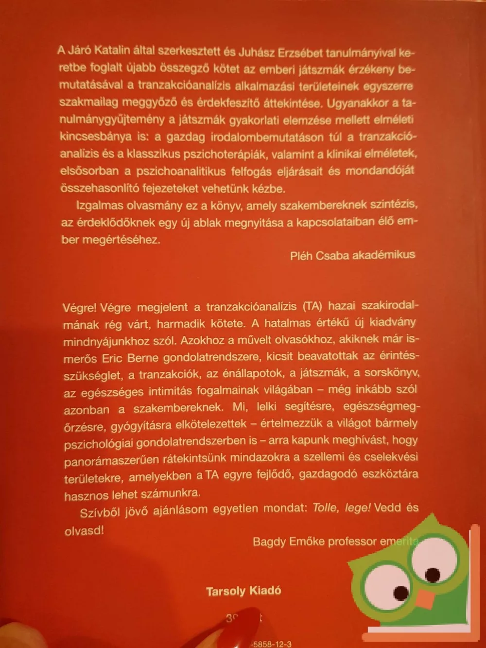 A játszmák játékos elemzését minden esetben a játszmákat meghaladó önállósodás és felnőtté válás bemutatása követi. A kötet ebben az optimizmusban is Buda Béla nyomdokain jár, akinek örökségéről Járó Katalin megemlékező tanulmánya ad életközeli képet.
