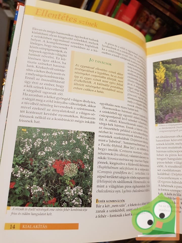 – Kialakítás: színkombinációk – növénycsoportok – árnyékos helyek – száraz, napos kertek – kerti tavak – illatok kertje