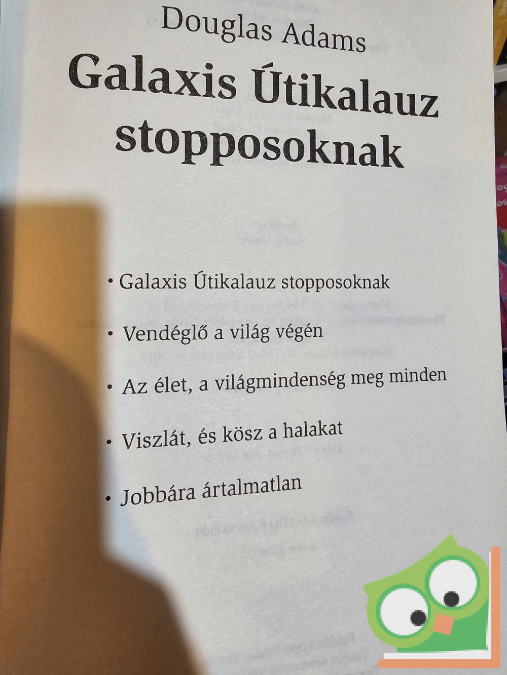 Ez a történet emellett egy könyvről is szól, melynek címe: GALAXIS Útikalauz stopposoknak. Ez nem földi könyv, sosem adták ki a Földön, és a szörnyű katasztrófát megelőzően egyetlen földlakó se látta vagy hallott róla.