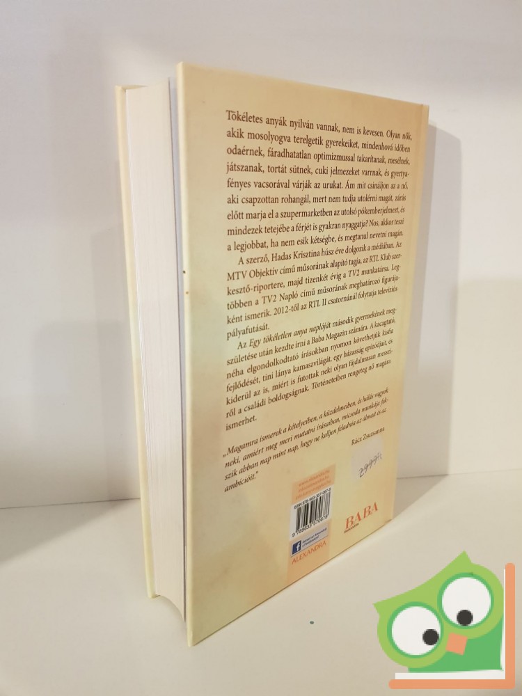 Az ilyen tökéletlen anya akkor teszi a legjobbat, ha nem esik kétségbe, és megtanul nevetni magán. Hadas Krisztina, kétgyerekes anya, feleség és televíziós újságíró pontosan ezt teszi. Vállalja tökéletlenségét. Könyvében kacagtató öniróniával fogalmazza meg négytagú családjának mindennapjait. Nyomon követhetjük kisfia fejlődését, tini lánya kamaszvilágát, egy házasság epizódjait és kiderül az is, miért is futottak neki olyan fájdalmasan messziről a családi boldogságnak.