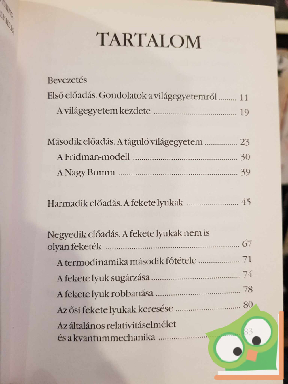 A mindenség elmélete hét előadást tartalmaz, amelyekben S.W.Hawking, a neves tudós, a tudomány nagy népszerűsítője fejti ki a világegyetem ismereteink szerinti történetét. Hawking felfedező utazásra hív tehát mindenkit a kozmosz világába, és arra készített, hogy megtaláljuk benne saját helyünket. Ez a könyv azoknak íródott, akik már néztek fel az éjszakai égboltra, és eltűnődtek azon, hogy mi is van odafönn, és mindaz hogyan került oda.