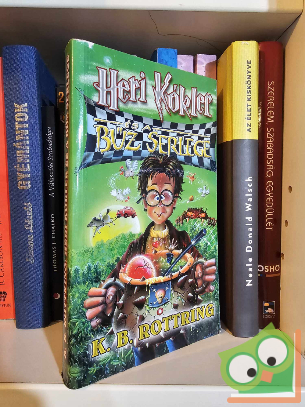 Ő volt az, Heri Kókler, korunk hőse, a világ többszörös megmentője. Ruházata átlagosnak tűnt, haja ápoltnak látszott, de amit a kezében tartott, az bizony nem volt más, mint a Bűz Serlege. A semmi máshoz nem hasonlítható, nagy köcsög oldalát sárkányfogakkal verték ki készítői, az ősi mesterek. Az edényben biogáz illatú, mérgező folyadék lötyögött, a halálos vegyületre az edényre erősített aprócska halálfej figyelmeztetett. De hiába! Mert a Bűz Serlegéből Dolby, a Monó Manó egyik keze nyúlt ki segélykérően. Heri nem tehetett érte semmit, mert csak két keze volt. A Bűz Serlegéből kipárolgó erős aromáktól szédülni kezdett. Tekintete most a folyadékra tévedt, amely felbugyogott, mint egy gejzír. Az edény aljáról a varázspálcája mellé felemelkedett a tojása. Piros volt és repedt! Miközben Heri fájdalmasan felordított, arra gondolt, micsoda ostobaság volt annyit ütögetni, feszegetni, inkább a zacskóban kellett volna hagynia a másik mellett. A műhorizonton alábukó Nap előtt, nem tudni miért, a csodatévő erejű egyfarkú vontatta automobil száguldott keresztül. A mit sem sejtő Heri Kókler háta mögött, a sövény túloldalán, rettenetes rémalak emelkedett fel, hogy végre elvegye tőle azt, ami az övé.