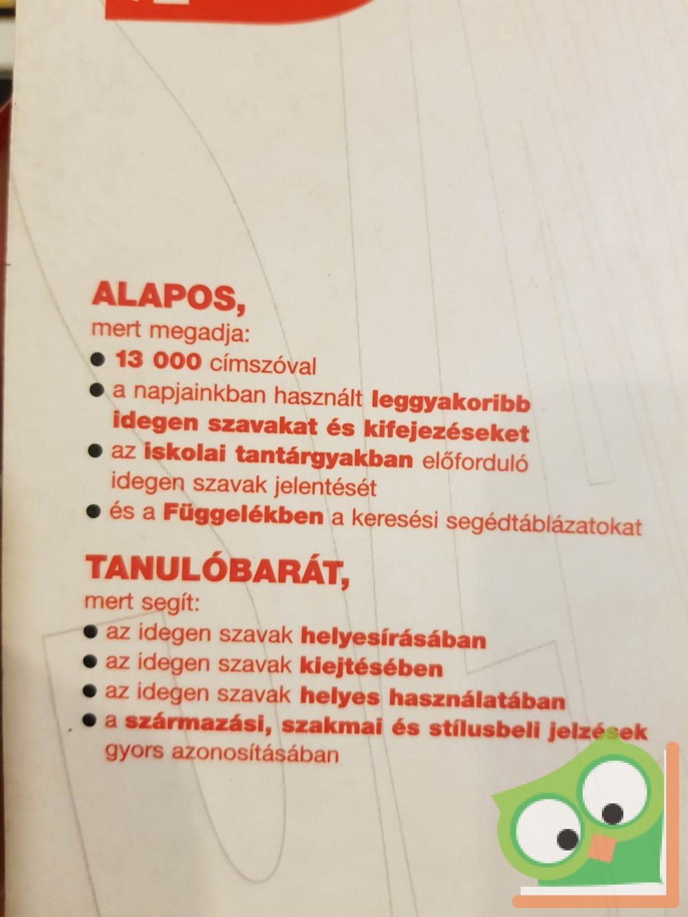 Magyar szövegben a mindennapi használatban sűrűn, olykor ritkábban előforduló, jobbára még ma is idegennek érzett szókészleti elemek (szavak, szókapcsolatok, bizonyos fajta tulajdonnevek) jegyzékét és magyarázatát tartalmazza ez a könyv. 1957 óta különböző terjedelemben, részben más közönség számára több azonos tárgyú szótárt adtam ki. Ez a mű azonban ezeknek nem egyszerű változata, hanem új szótárnak tekintendő. Csaknem negven esztendő alatt bármilyen szótári munka – még az átdolgozások, többszöri javítások, kiegészítések ellenére is – elavul, de ráadásul ez alatt az idő alatt teljesen megváltozott körülöttünk a világ, megváltozott a mi saját világunk is.