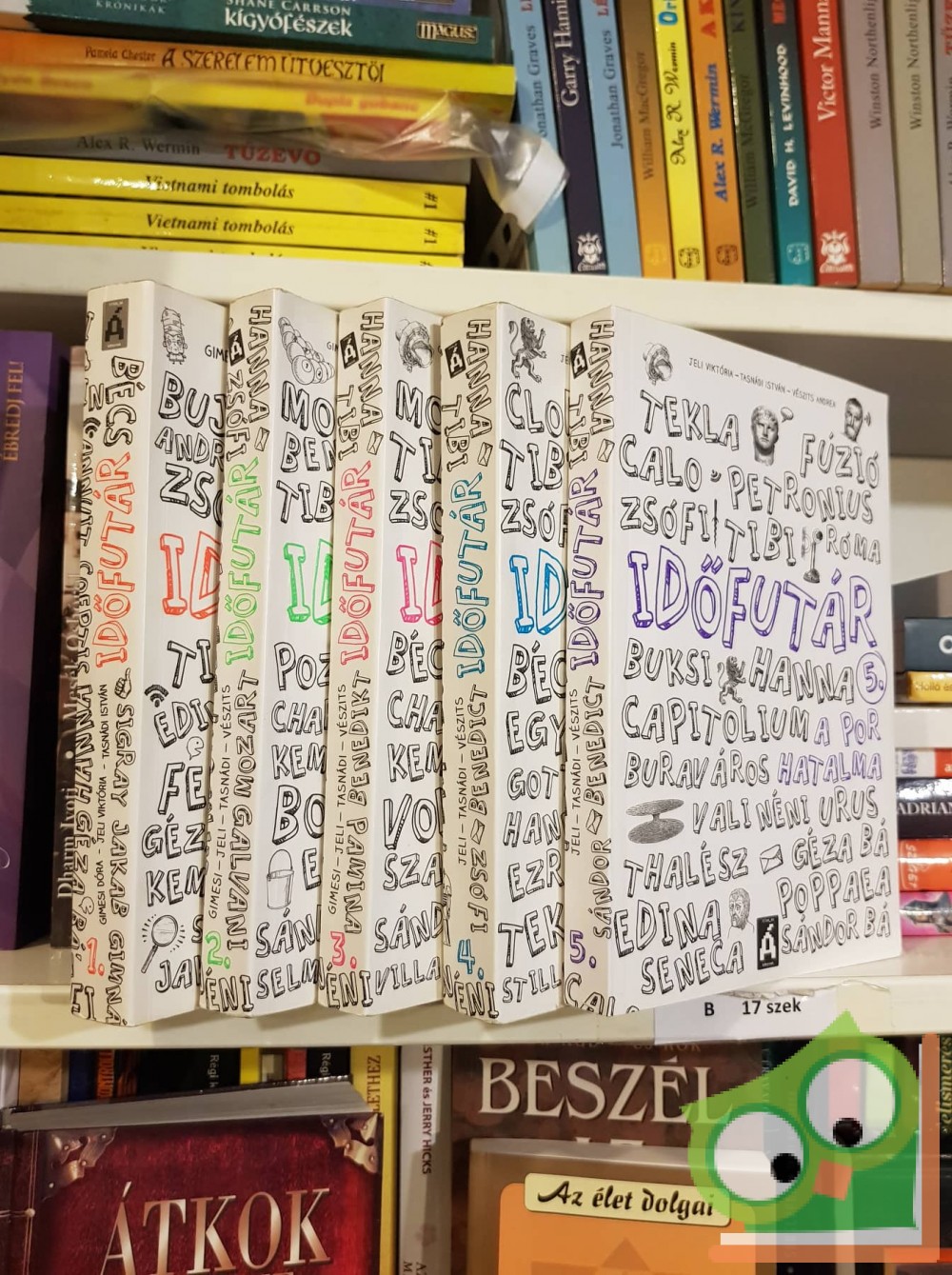 „ Hirtelen erős szél söpört végig a ligeten. Csak pár pillanat volt az egész, aztán minden elcsöndesedett. Hanna felnézett. Döbbenten látta, hogy rajta kívül nincs már ott senki. Hiába nézett bármerre, egyedül volt, mindenki eltűnt mellőle.Üres volt a bokor is, ami Schrödingert foglyul ejtette.Szél se rezzent, a liget megint a szelíd tavaszi napfényben fürdő idilli táj volt.” Az Időfutár csapata három részre szakadt az időben, és még ennél is többre a térben. Vajon hogyan boldogul Hanna a tehénfejéssel Bécsben a tizennyolcadik században? A jelenben Szegeden egészen jól halad a hadronépíté, de megérkezik Hanna néni, és onnantól valahogy minden összekavarodik. Szabika pedig Edinának kezd el udvarolni, ami tényleg a világ vége! A jövő sem biztat sok jóval, ha Bújdosónéval vagy összezárva egy óriási porszívóban – ezt még egy daleknak sem kívánja az ember. Ki gondolná, hogy azok járnak a legjobban a negyedik részben, akik magával Néróval bulizhatnak? A Gimesi – Jeli – Tasnádi – Vészits rádiójátékból született regény 4. része! LEHETETLEN, IZGALMAS, VICCES, MAI!