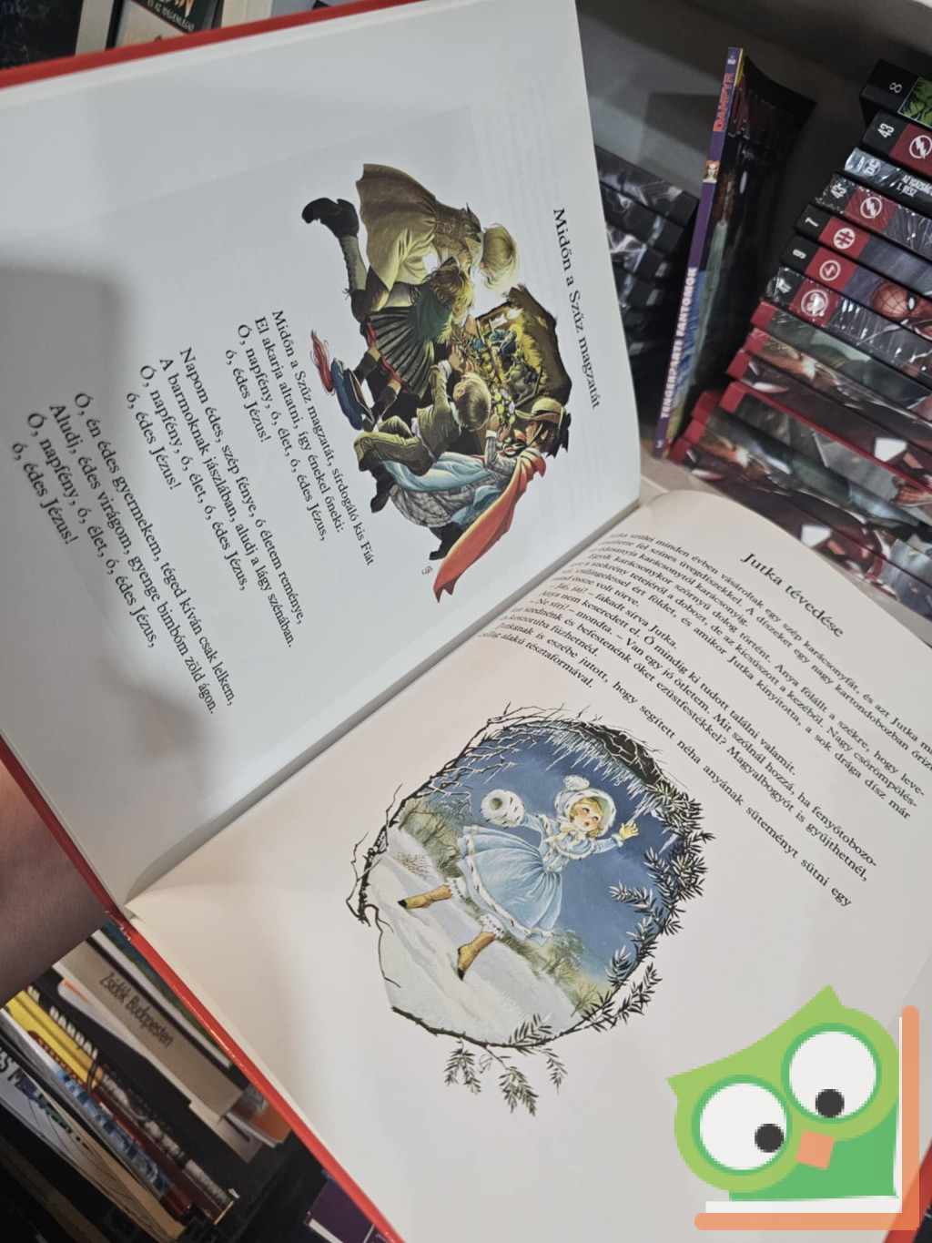 Ez a gazdagon illusztrált karácsonyi mesekönyv a különböző történetek mellett karácsonyi énekeket is tartalmaz Mezey Katalin és Oláh János fordításában és válogatásában. Például: Krisztus születése, A három napkeleti bölcs, Szép kelet, szép nap (magyar karácsonyi ének), Karácsony díszei, Csendes éj, szentséges éj (német karácsonyi ének), Luther Márton gyertyái, A bűvös játékbolt.