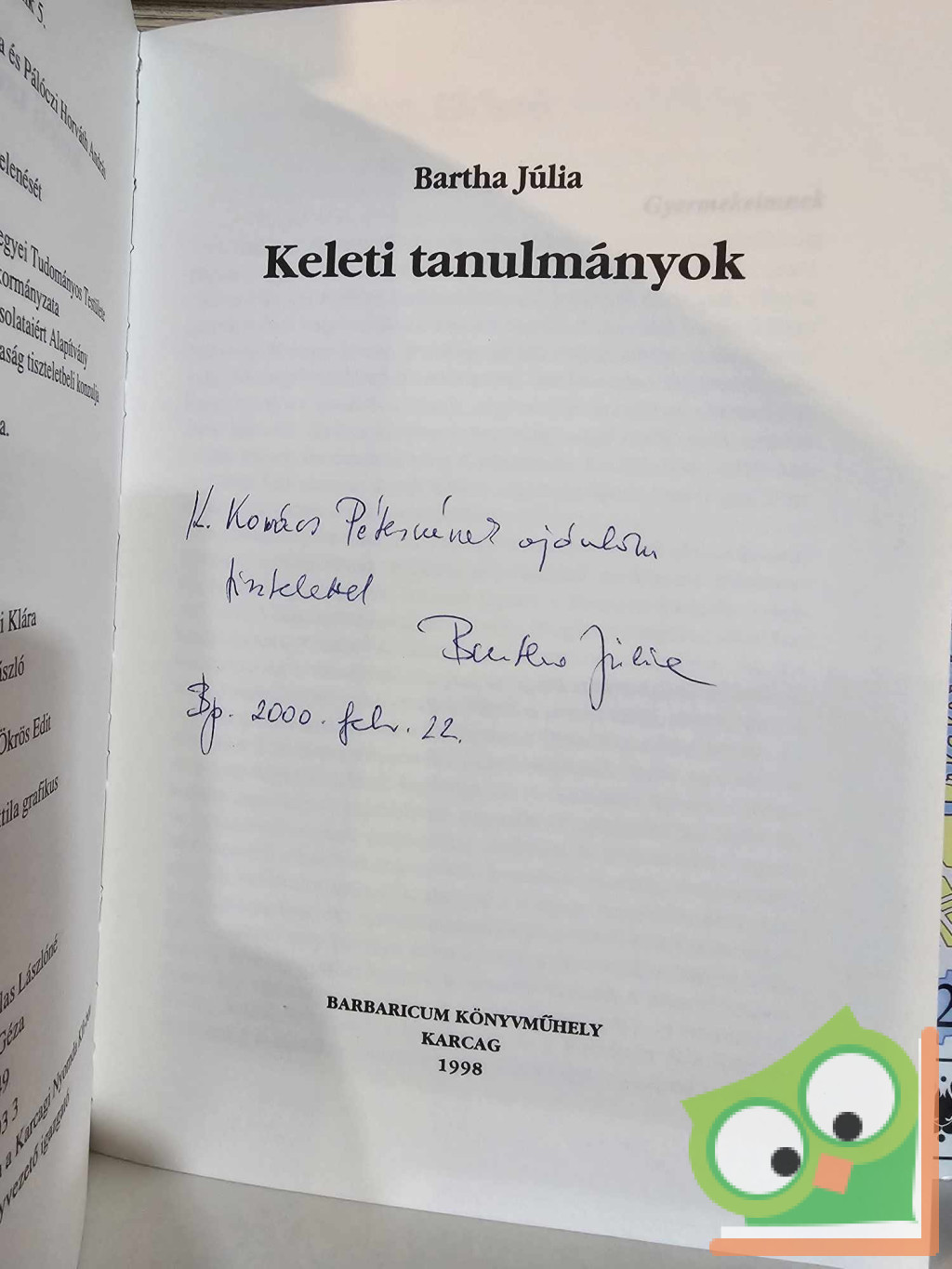Bartha Júlia: Keleti tanulmányok (dedikált)