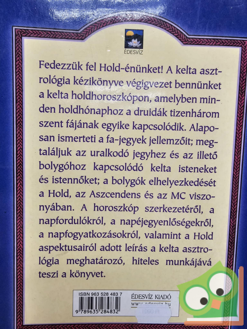 Fedezzük fel Hold-énünket! A kelta asztrológia kézikönve végigvezet bennünket a kelta holdhoroszkópon, amelyben minden holdhónaphoz a druidák tizenhárom szent fájának egyike kapcsolódik. Alaposan ismerteti a fa-jegyek jellemzőit; megtaláljuk az uralkodó jegyhez és az illető bolygóhoz kapcsolódó kelta isteneket és istennőket; a bolygók elhelyezkedését a Hold, az Aszcendens és az MC viszonyában. A horoszkóp