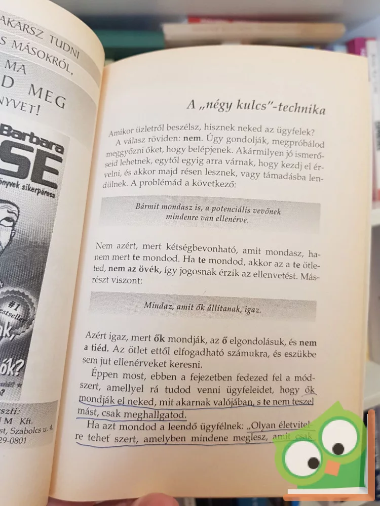 A Kérdezni tudni kell! című könyvében Allan Pease először mutatja be a Multi Level Marketing egyik leghatásosabb módszerét. Megtanít rá, miként lehet szert tenni egész életre szóló, kimagasló jövedelemre, elismerésre és sikerre; annak a lélektanára, hogyan kommunikálj, ha célt akarsz elérni az üzleti életben. „Ne feledd: Az első benyomásra nincs második lehetőség!”