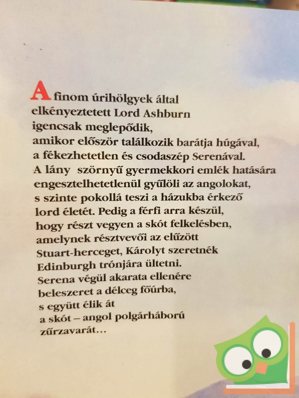 Serena MacGregor, a Skót-felföld tüzes szépsége az angolok iránti csillapíthatatlan gyűlölet jegyében él. A finom úrihölgyek által elkényeztetett Lord Ashburn igencsak meglepődik, amikor először találkozik barátja húgával, a fékezhetetlen és csodaszép Serenával. A lány családját gyorsan elbűvöli a házukba kerülő ifjú angol nemes, ám Serena sokáig mégsem hiszi el, hogy a férfi valóban harcolni akar a skót felkelők oldalán A lány szörnyű gyermekkori emlék hatására engesztelhetetlenül gyűlölii az angolokat, s szinte pokollá teszi a náluk vendégeskedő lord életét. Pedig a férfi valóban arra készül, hogy részt vegyen a skót felkelésben, amelynek résztvevői az elűzött Stuart-herceget, Károlyt szeretnék Edinburgh trónjára ültetni. Serena végül akarata ellenére beleszeret a délceg főúrba, s együtt élik át a skót-angol polgárháború zűrzavarát…