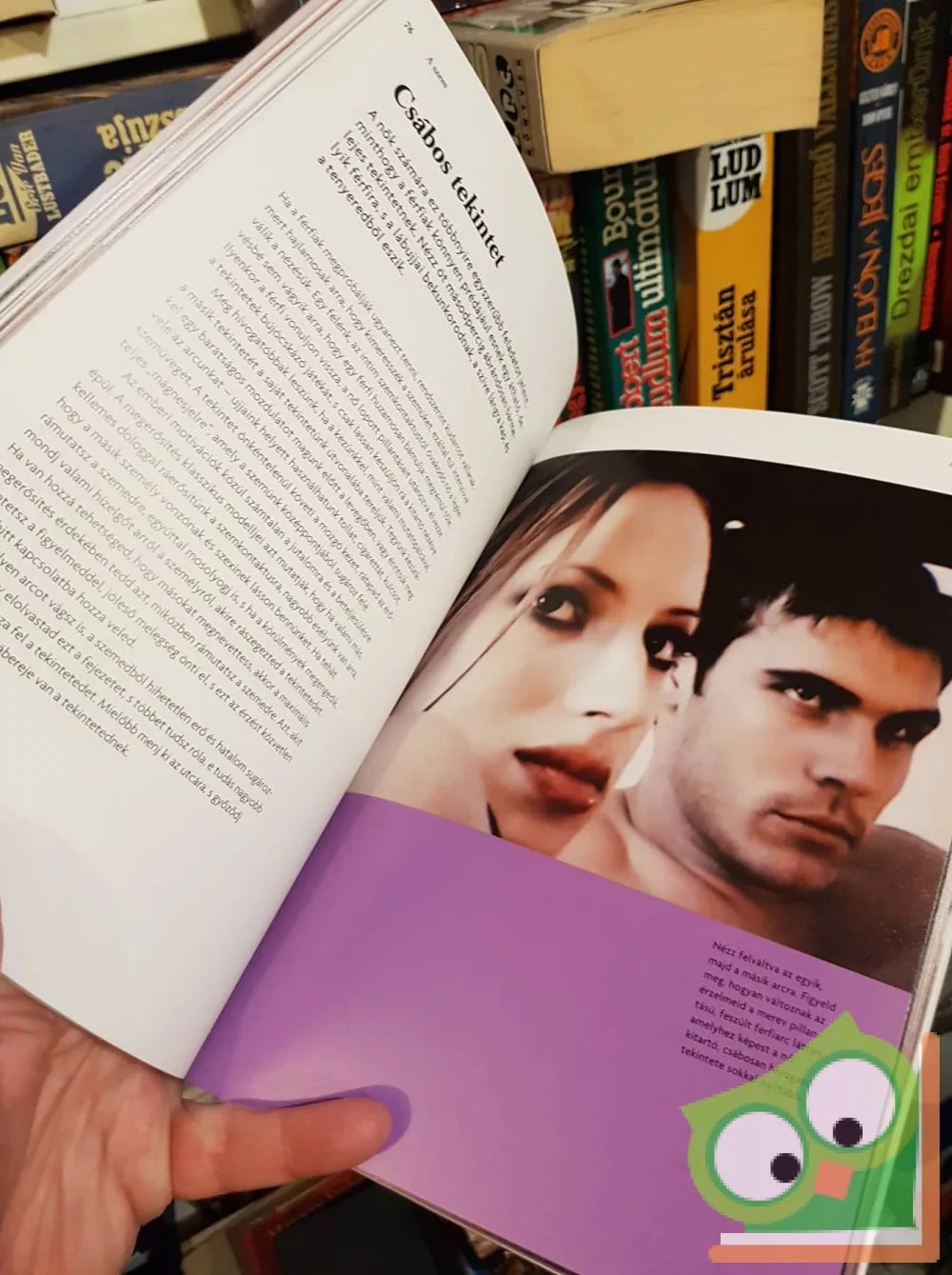 Nemcsak az erotikus töltetű testbeszéd, hanem egyben a csábítás kézikönyve is ez a színes fotókkal illusztrált kötet, amely a nem verbális kommunikáció tudatos értelmezését és felhasználását tűzi ki célul a párkapcsolatot kialakítani vágyók számára. A bevezető fejezet után a személyes térről, vonzalomra utaló árulkodó jelekről, az első benyomásokról, a szem és a tekintet jelentőségéről, a szájról, az egész test „beszédéről”, a többi érzékről, végül pedig mindezek összképéről olvashatunk. A kötetet bibliográfia és tárgymutató zárja.