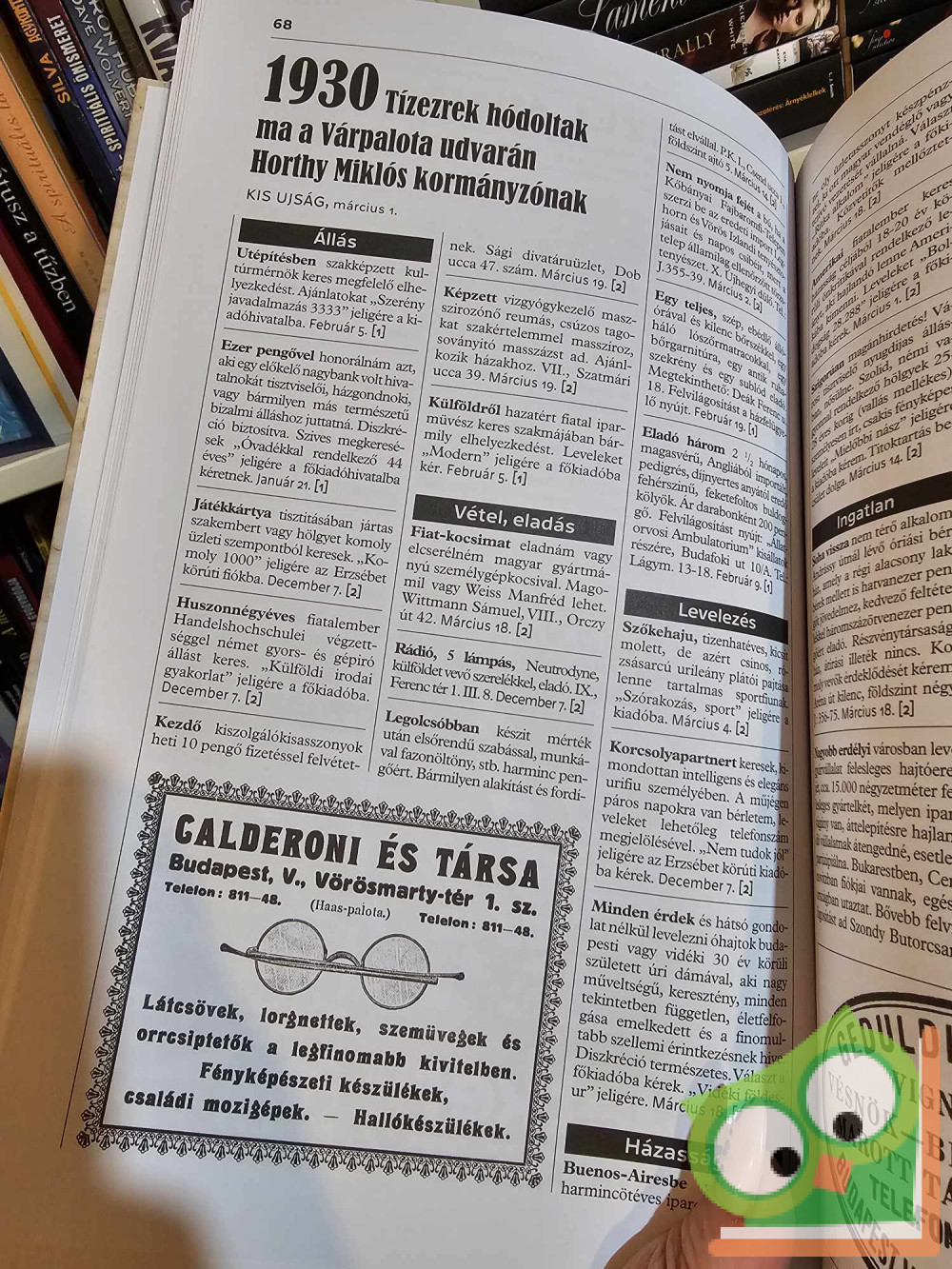 A kötet az újsághirdetések hazai aranykorát idézi, átfogja a teljes XX. századot. Nem tudományos mű, hanem személyes és szubjektív válogatás a Magyarországon megjelent újsághirdetésekből. Mint cseppben a tenger mutatkozik meg bennük száz év magyar valósága: kiderül, hogy elődeink mit adtak-vettek, milyen házastársra vagy partnerre vágytak, milyen lakásokat és állásokat kerestek-kínáltak, vagy éppen miféle tervek megvalósításához próbáltak partnereket találni a gyakran viharos gyorsasággal változó körülmények közepette. S bár az apróhirdetések vannak a könyv fókuszában, az olvasó ízelítőt kap a korszak folyamán a hazai lapokban megjelent képes újsághirdetésekből is, amelyekben nem a magánemberek, hanem a cégek reklámüzenetei dominálnak. A kötetben szereplő hirdetések hű tükrei a század különböző korszakainak: tartalmukban, nyelvezetükben, szóhasználatukban avagy képi megfogalmazásukban.