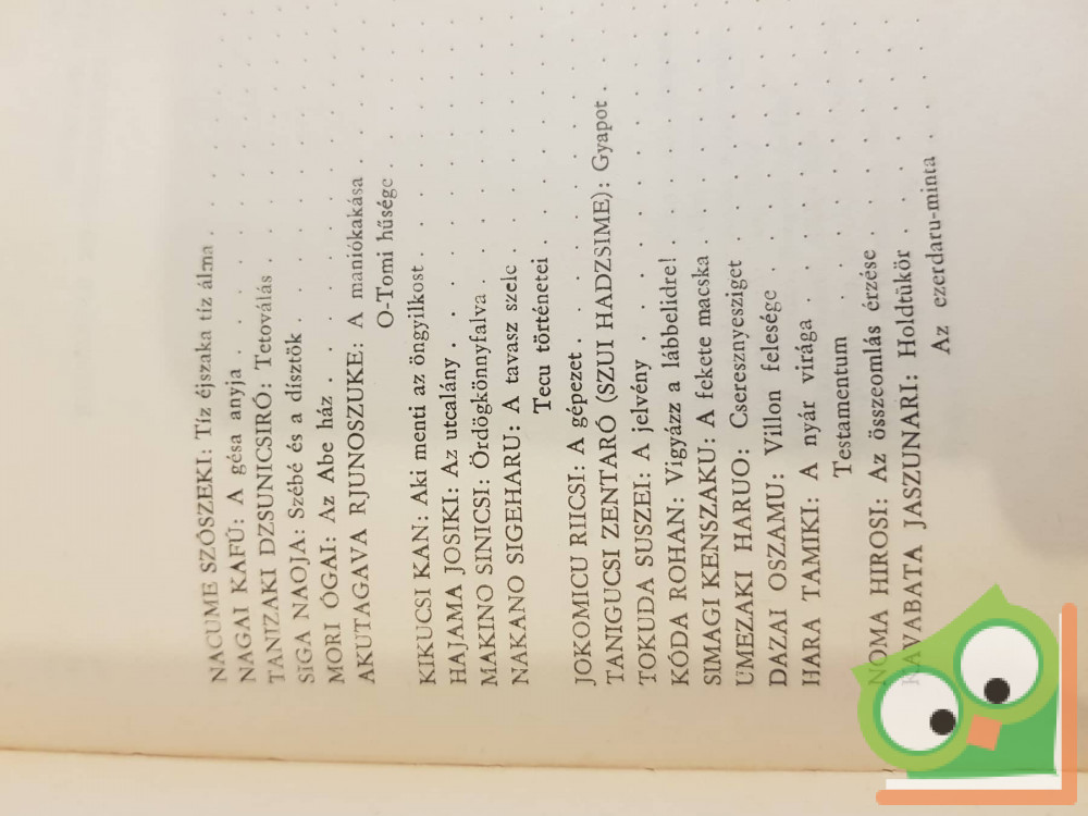 A Modern Könyvtár sorozatban megjelent és nagy sikert aratott Fukazava Hicsiró: Zarándokének című novellás kötetének olvastán bizonnyal föltámadt a magyar olvasó érdeklődése: milyen lehet a modern japán novellisztika egésze, ha olyan nagy művészt adott az irodalomnak, mint amilyen Fukazava? Nagy gonddal készült, 26 író 31 novelláját tartalmazó gyűjteményünk ezt az érdeklődést elégíti ki. Kötetünk a modern japán elbeszélés-irodalmat mutatja be századunk elejétől napjainkig, híven követve minden jelentős áramlatát, kacskaringós és mégis előreívelő fejlődését. A magyar olvasó számára ismert és ismeretlen írók művei egy távoli világ nagyon is mai – tehát számunkra is érthető – problémáiról vallanak, jobbára harsány színekkel, megdöbbentően, és az olvasó a művészi élmény részeként sok olyan japán egzotikumot ért meg ezekből a novellákból, amit semmi más forrásból nem érthetne meg jobban.