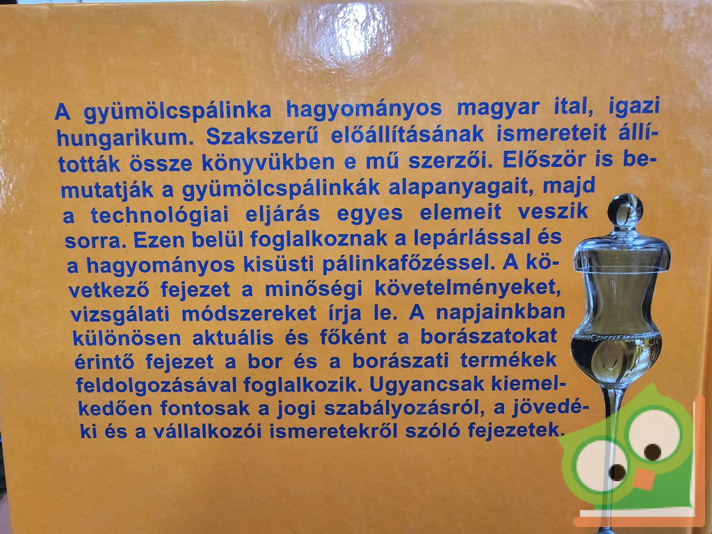 A gyümölcspálinka hagyományos magyar ital, igazi hungarikum. Szakszerű előállításának ismereteit állították össze e mű szerzői. Az alapanyagokat, a technológiai eljárás egyes elemeit bemutató fejezeteket friss adatokkal kiegészítve közlik. Részletesen foglalkoznak a lepárlással, a hagyományos kisüsti pálinkafőzéssel, a minőségi követelményekkel, vizsgálati módszerekkel. A napjainkban különösen aktuális és főként a borászatokat érintő fejezet a bor és a borászati termékek feldolgozásával foglalkozik. A földrajzi eredetvédelem alá tartozó pálinkák leírása a göcseji körtepálinkával, a pannonhalmi törkölypálinkával és az újfehértói meggypálinkával bővült. Teljesen megújult a vállalkozói ismeretekről szóló rész.