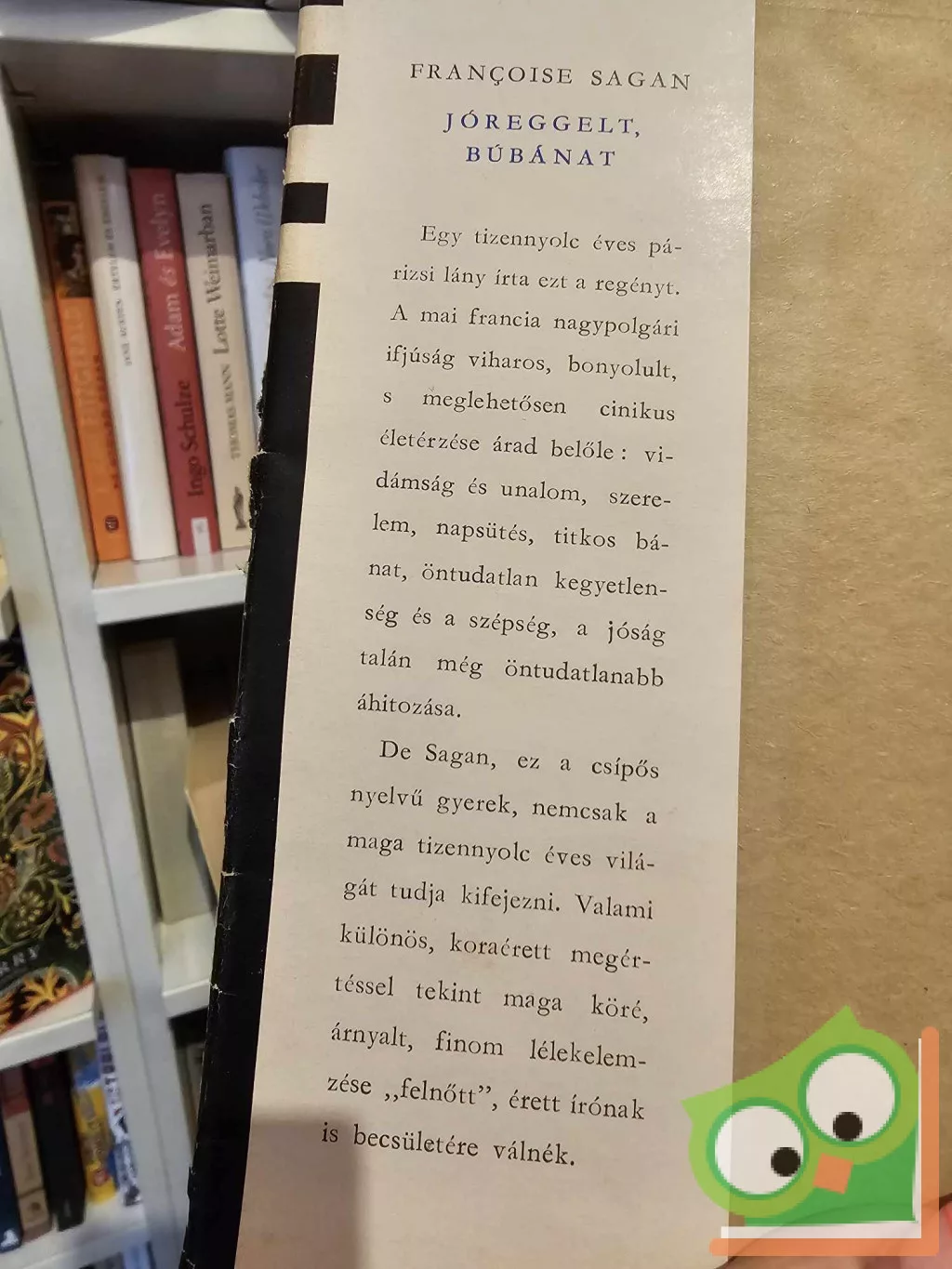 De Sagan, ez a csípős nyelvű gyerek, nemcsak a maga tizennyolc éves világát tudja kifejezni. Valami különös koraérett megértéssel tekint maga köré, árnyalt, finom lélekelemzése „felnőtt”, érett írónak is becsületére válnék.