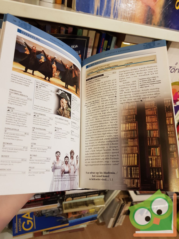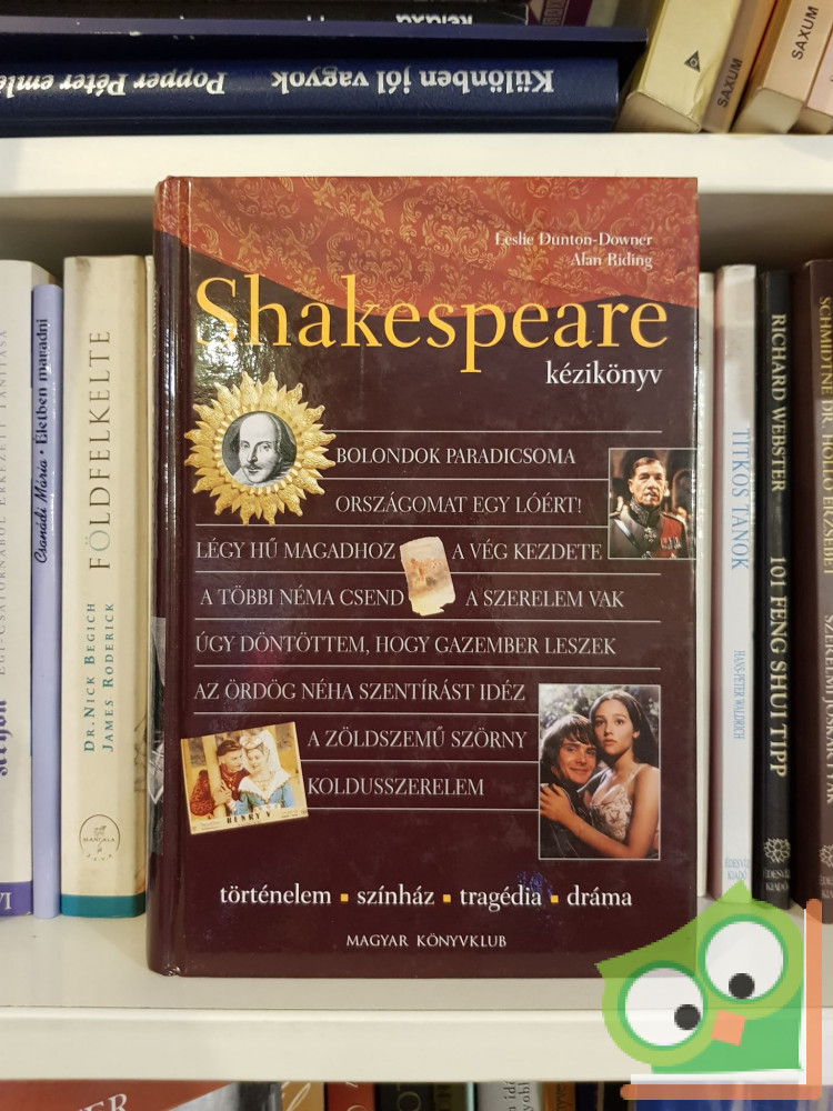 A gyarlóságnak asszony a neve, a szerelem vak, a zöldszemű szörny pedig nem szokott gyertyát tartani. – Ki hinné, hogy e rövid kis mondatban négy Shakespeare-idézet is van. A jó bornak nem kell cégér (ez is Shakespeare), ám ha mégis, akkor nagyon szép legyen: e kötet útikalauz Shakespeare összes műveihez. Áttekintést ad a kor történelmi és irodalmi eseményeiről, kultúrtörténetéről és bemutatja a művek legfontosabb, legérdekesebb színházi, filmes, operai feldolgozásait. Diákok és a színházszerető közönség haszonnal – mindenki más élvezettel is forgathatja az igazi, hangulatfestő fotókkal illusztrált szép könyvet.