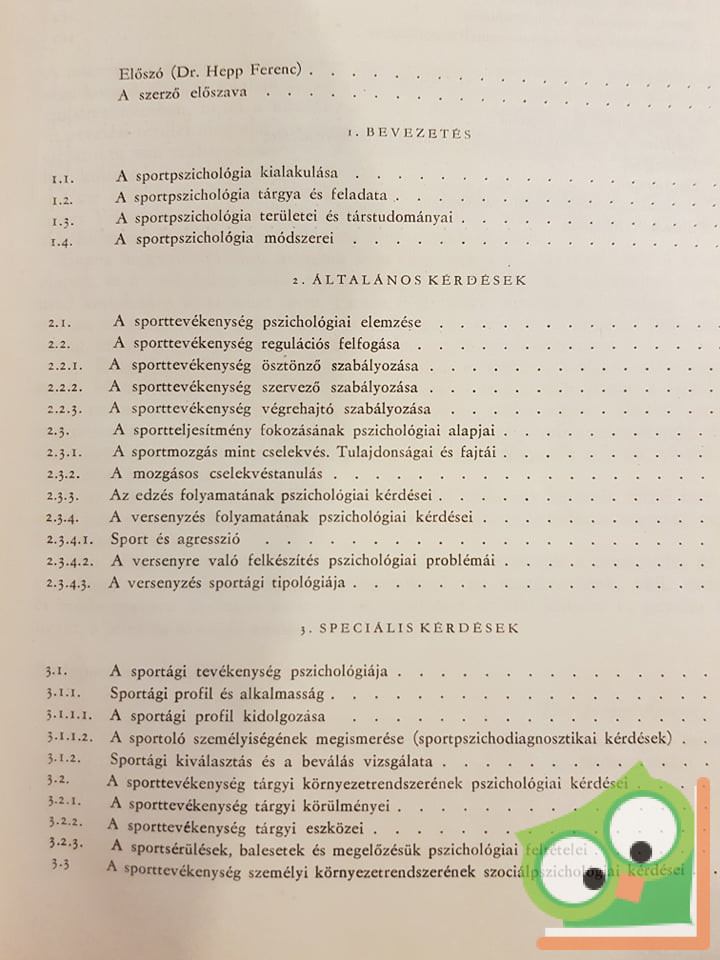 A testnevelés és sport az egyetemes emberi kultúra szerves része, amelynek jelentősége korunk civilizációjában minden eddiginél jobban megmutatkozik, mind a szakemberek körében, mind a közvéleményben. Ahhoz azonban, hogy e fontos kultúr- és nevelési terület megtalálja a maga helyét, szerepét s feladatkörét, élő elven kapcsolatokra van szüksége, amelyek által valóban szervesen épül be az egyetemes emberi kultúra s nevelésügy nagy egészébe. Eme célkitűzés alapján alakult meg az UNESCO kebelében a Testnevelési és Sport világtanács, mely a legmagasabb nemzetközi szinten biztosítja eme integrációs folyamat és törekvés elvi alapjait és szervezeti kereteit. Ennek megvalósításához azonban nem elégségesek a szervezeti keretek és az elvi alapok, ez a valóságban csakis tudatos felismerés, elmélyült, előre tekintő szemléletmód kialakítása által jöhet létre. Ennek előfeltétele viszont olyan átfogó, tudományosan megalapozott, gyakorlatba is átültethető, meggyőzés erejével ható ismeretanyag, amely megteremti az integráció tudati s gyakorlati feltételeit, Dr. Rókusfalvy Pál Sportpszichológiája teljes mértékben kielégíti a legmagasabb szintű követelményeket és különlegesen értékes hozzájárulást jelent a fejlődéshez. Az egész művet áthatja a cselekvés funkcionális szabályozásán alapuló személyiségkonstelláció elve, az integrációra törekvés interdiszciplináris alapeszméje, dialektikus egységben az elmélet és gyakorlat, a sajátossági tényezők szigorú, következetes szem előtt tartásával. Ez az alkotás messze túlhaladja egy főiskolai tankönyv kereteit, mind tartalmát, mind jelentőségét tekintve. Nem más ez, mint a sportpszichológia korszerű nemzetközi szintű alapvetése. Ezért nélkülözhetetlennek tartom ezt a könyvet, nemcsak a testnevelés és sport vezetőinek, szakemberinek, pszichológusoknak, de mindazoknak, akik tudatosan és eredményesen kívánják szolgálni az egyetemes emberi kultúra és nevelés nemes ügyét, a jelen és jövendő nemzedék boldogulását.