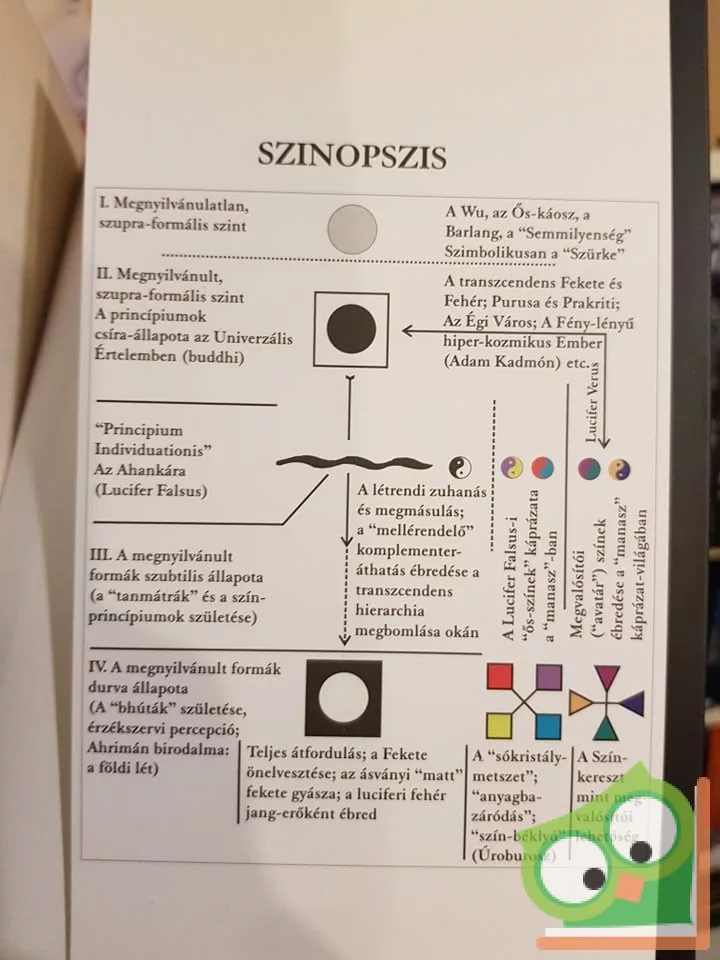 Newton és Goethe nyomán a színek apropóján indulhat igazi szellemi kalandra az olvasó Orosz László Wladimir útitársaként. Azonban, míg a nagy elődök megelégedtek a tudományos tényszerűségek magyarázatával, szerzőnk kizárólag szellemi irányt szabott tanulmányának. A színek elvont jelentéstartalmai a filozófus-író széles skálán mozgó gondolkodásának remek terepet kínálnak, hogy kibonthassa az emberi lélek, az emberi kultúra gyökereit, azokat a kapcsolatokat, amelyek visszaigazolását a nagy világvallások, az antik bölcselők, a modern kor filozófusai, írói eredményeinek érintésével kívánja megragadni. Ez a szellemi igényű megközelítés a vezérfonala a könyv két fő részének, A színek eredetéről és jelentéséről, valamint A színek erejéről írott metafizikai érzékenységgel átitatott gondolatoknak. Például a komplementaritás elvének kibontásánál a színek oppozíciója alkalmat ad a szerzőnek transzcendens minőségek láttatására többek között filológiai meglátásai felhasználásával. Ilyeténképpen a klondike-i aranyláz vagy a kelta zöld is más megvilágítást kap, mint a röghöz kötött következtetések engednék. Ez az intuitív látásmód érvényesül az utolsó fejezetben is, ahol Hamvas Béla spirituális iránymutatásait követve Weöres Sándor Háromrészes ének című verse mélyrétegeinek feltárására vállalkozik Orosz László Wladimir.