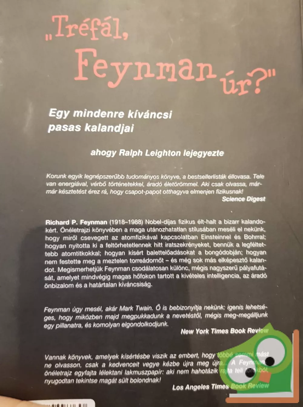 A Nobel-díjas fizikus élt-halt a bizarr kalandokért. Önéletrajzi könyvében a maga utánozhatatlan stílusában meséli el nekünk, hogy miről csevegett az atomfizikával kapcsolatban Einsteinnel és Bohrral; hogyan nyitotta ki a feltörhetetlennek hitt iratszekrényeket, bennük a legféltettebb atomtitkokkal; hogyan kísért balettelőadásokat a bongódobján, hogyan nem festette meg a meztelen torreádornőt – és még sok más elképesztő kalandot. Megismerhetjük Feynman csodálatosan különc, mégis nagyszerű pályafutását, amelyet mindvégig magas hőfokon tartott a kivételes intelligencia, az áradó önbizalom és a határtalan kíváncsiság.