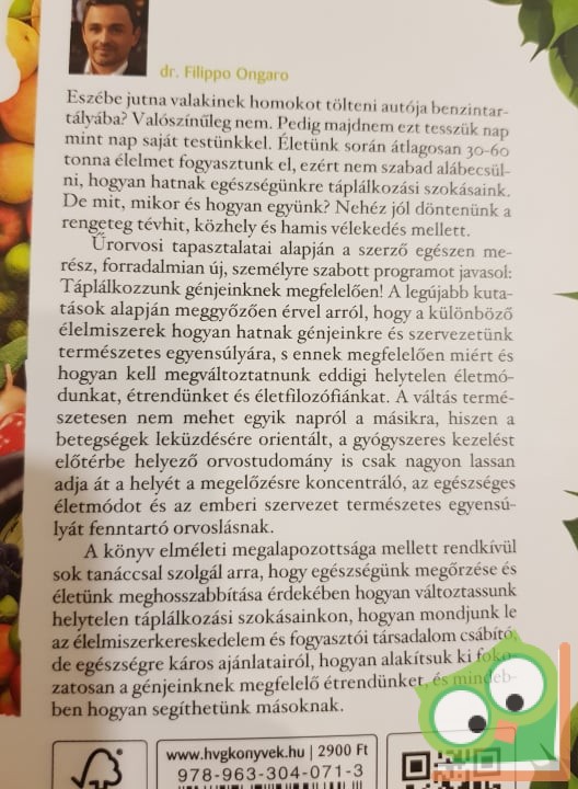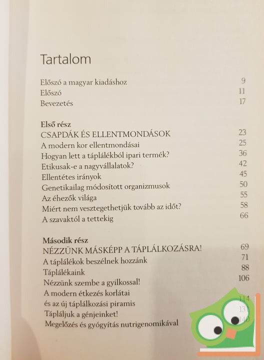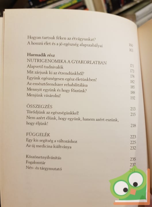 A könyv elméleti megalapozottsága mellett rendkívül sok tanáccsal szolgál arra, hogy egészségünk megőrzése és életünk meghosszabbítása érdekében hogyan változtassunk helytelen táplálkozási szokásainkon, hogyan mondjunk le az élelmiszerkereskedelem és fogyasztói társadalom csábító, de egészségre káros ajánlatairól, hogyan alakítsuk ki fokozatosan a génjeinknek megfelelő étrendünket, és mindebben hogyan segíthetünk másoknak.