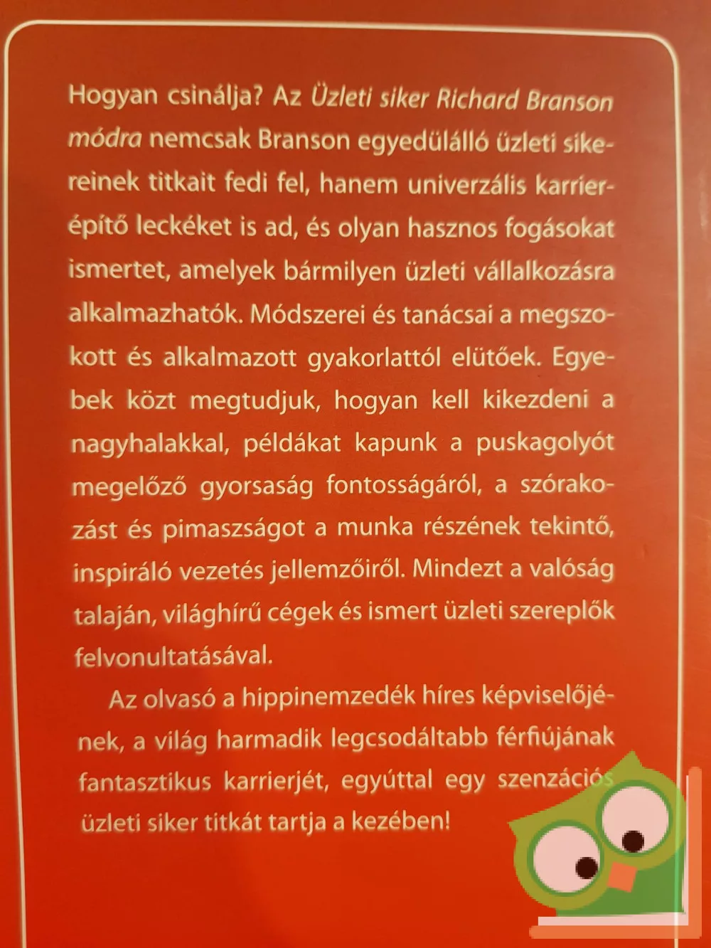 Hogyan csinálja? Az Üzleti siker Richard Branson módra nem csak Branson egyedülálló üzleti sikereinek titkait fedi fel, hanem univerzális karrierépítő leckéket is ad, és olyan hasznos fogásokat is felvázol, amelyek bármilyen üzleti vállalkozásra alkalmazhatók. Módszerei és tanácsai a megszokott és alkalmazott gyakorlattól elütőek. Egyebek közt megtudjuk, hogyan kell a nagyhalakat piszkálni, példákat kapunk a puskagolyót megelőző gyorsaság fontosságáról, a szórakozást és pimaszságot a munka részének tekintő, inspiráló vezetés jellemzőiről. Mindezt a valóság talaján, világhírű cégek és ismert üzleti szereplők megjelenítésével.