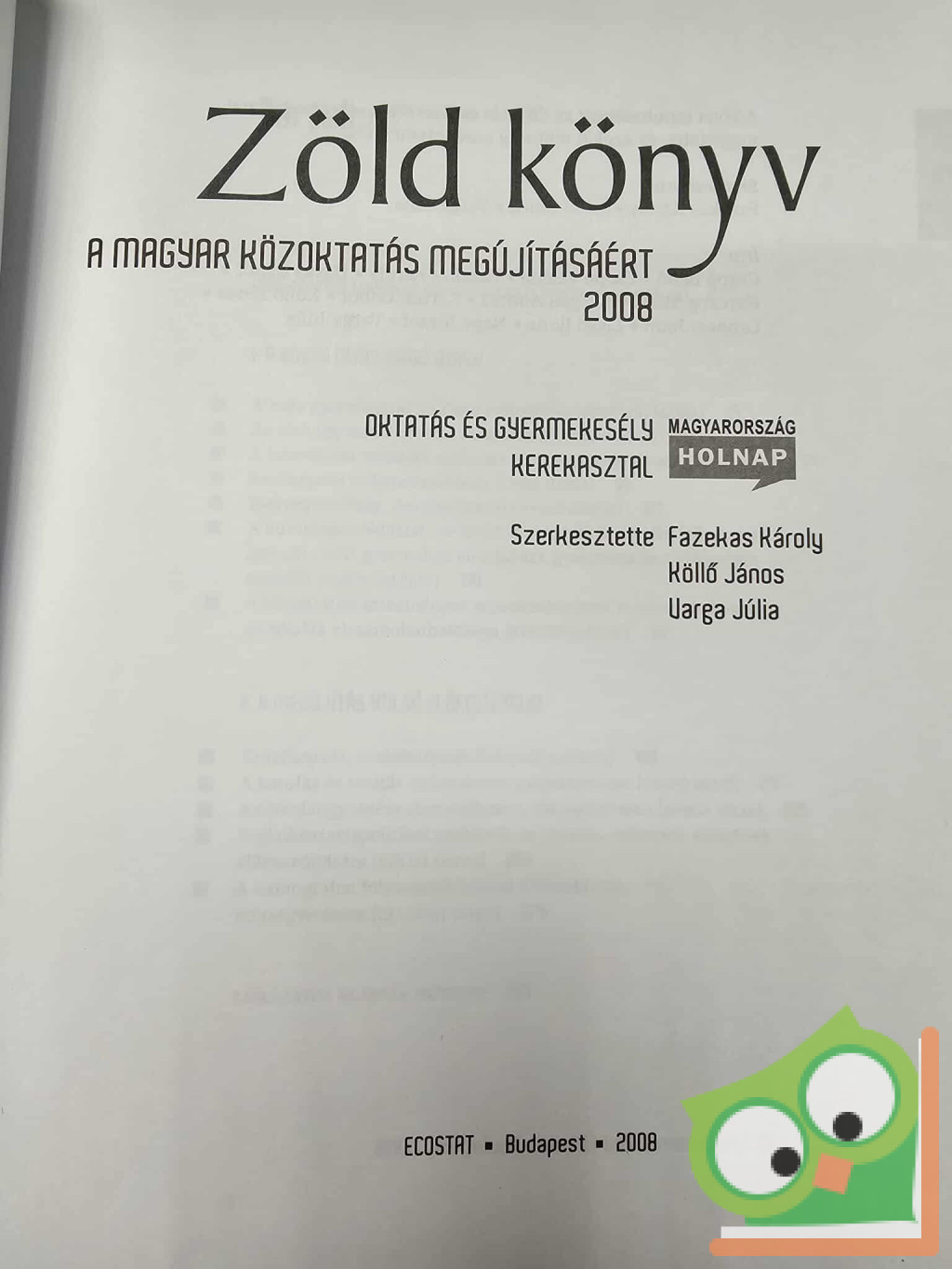 Zöld könyv 2008 (A magyar közoktatás megújításáért) című könyv tartalma: